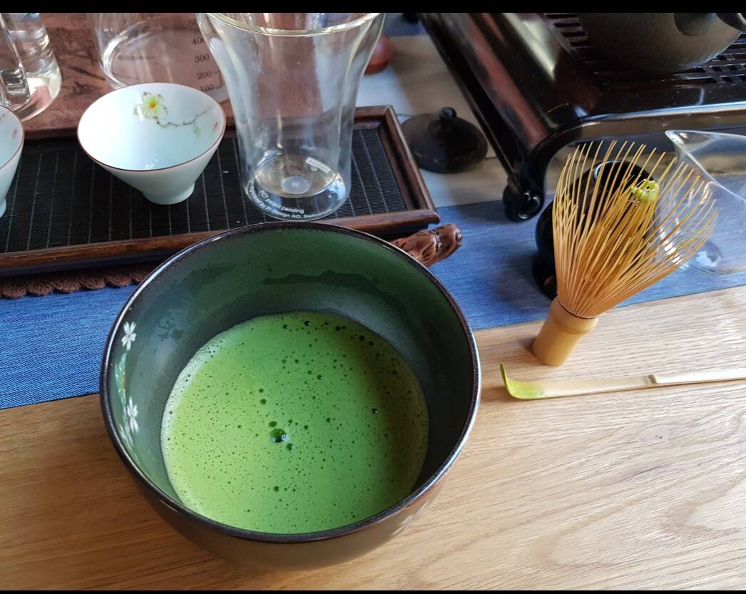 In diesem Workshop geht es darum, den richtigen japanischen Matcha kennenzulernen. Das wunderschöne grüne Pulver wird aus wertvollen Teeblättern hergestellt und mit einem Bambusbeselchen schaumig aufgerührt.