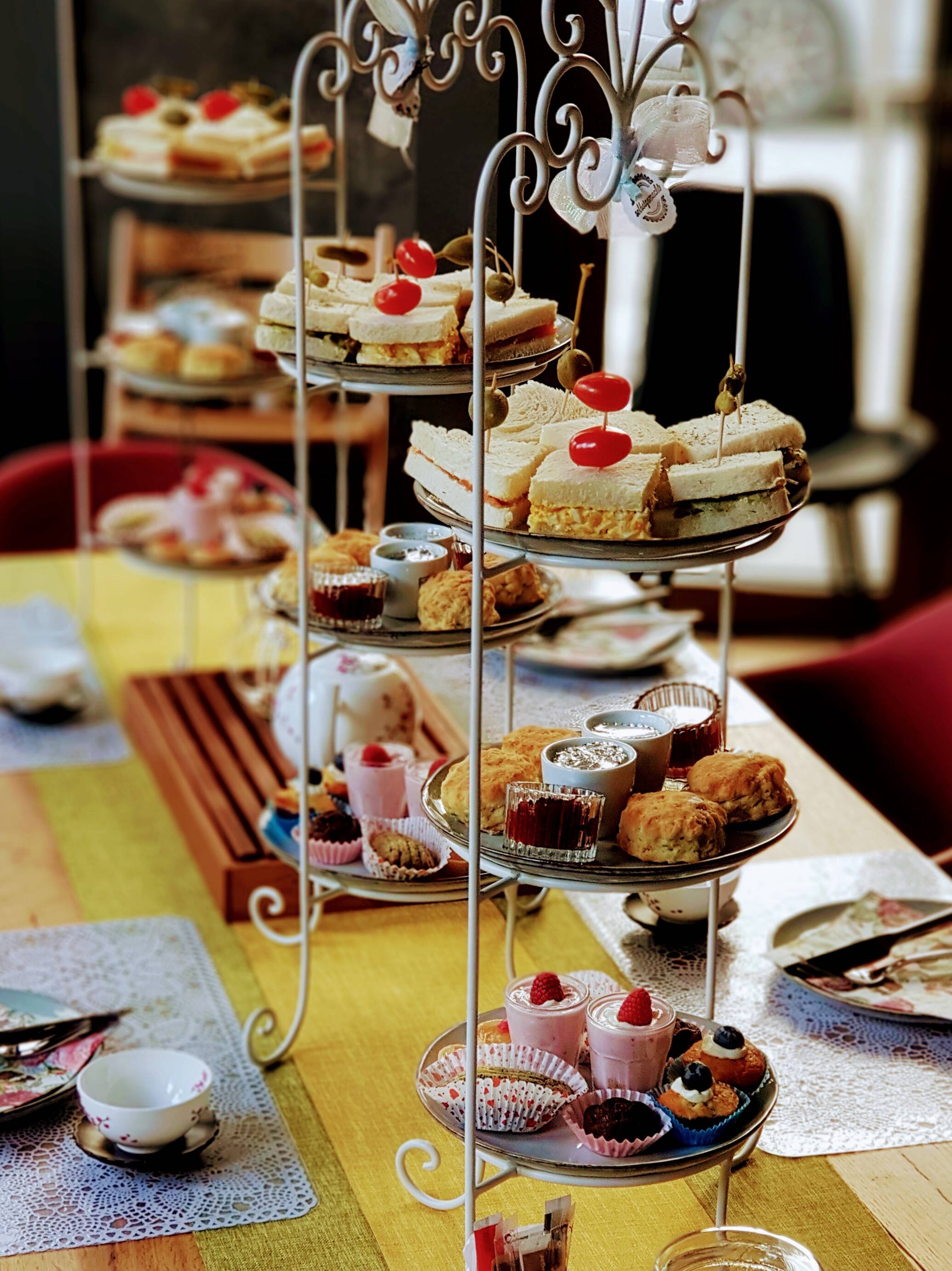 Die reichhaltige, mit Liebe zubereitete Etagere enthält: selection of english sandwiches / classic homemade scones with jam and clotted cream / fine sweet corner with tarts. Als Tee servieren wir beste traditionelle indische und hochwertige chinesische Sorten.